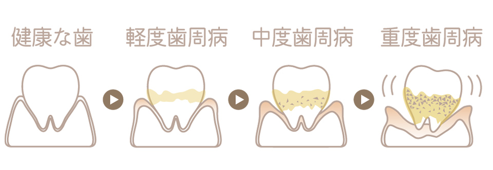 軽度の歯周病の場合は痛みなどの自覚症状はありませんが、進行してしまうと膿が出たり歯が動揺したりしてきます。そして最終的には歯を抜かなければならなくなってしまいます。